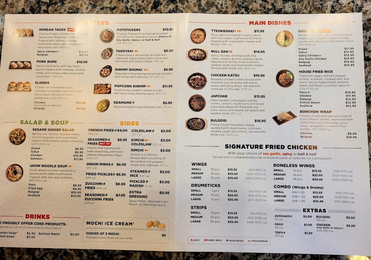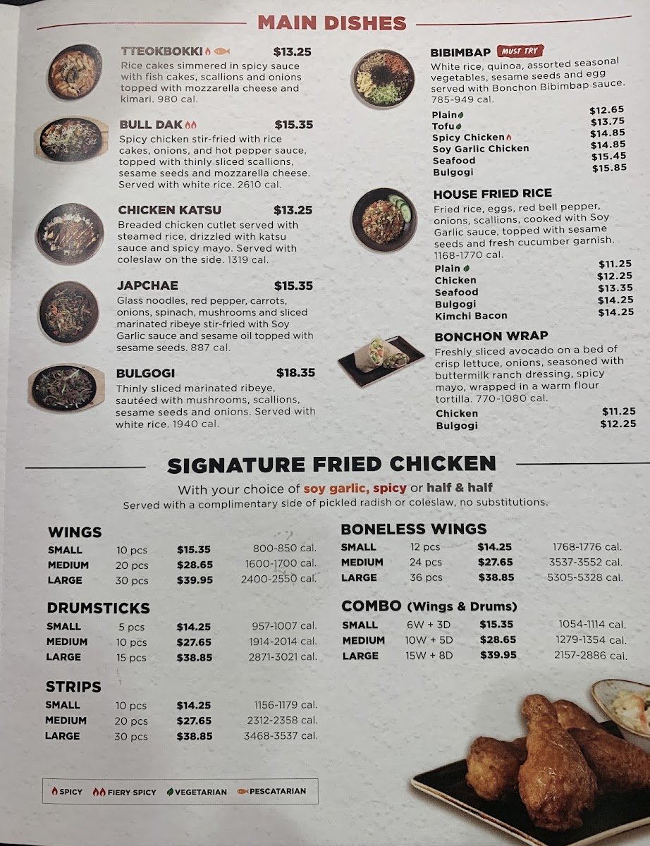 All your favs! 2 drums, 4 wings, Bulgogi Fries, Pork Potstickers, Korean Street Corn and Coleslaw. Your choice of Bonchon signature sauce and a dipping sauce. Feeds 2-3