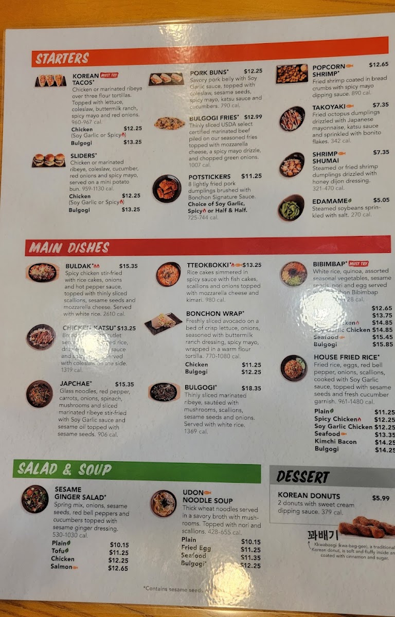 Bulgogi piled on our seasoned fries and topped with mozzarella, scallions and a drizzle of spicy mayo. (*Contains sesame seeds or sesame seed oil.)